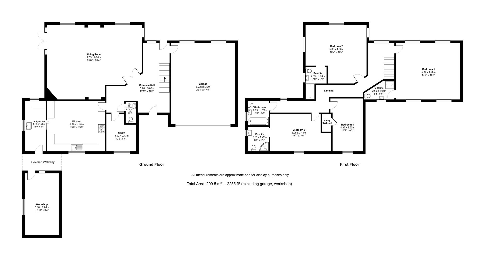 - Galleried landing and four very comfortably sized bedrooms, three with smartly fitted ensuite showers and a family bathroom.