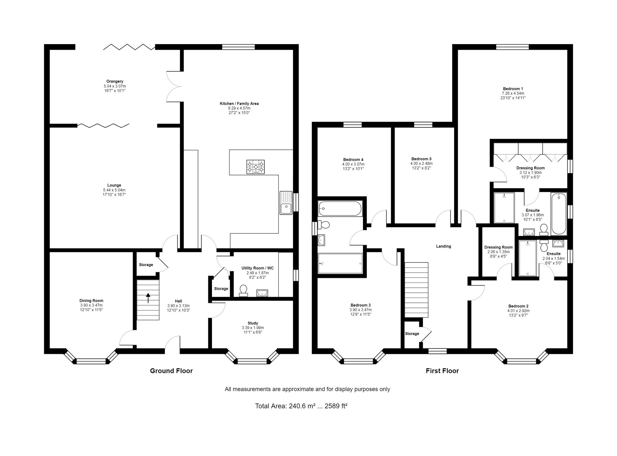 - Master Bedroom with adjoining dressing room and ensuite complete with a bath and shower.